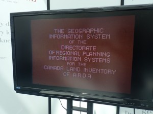 先日紹介したロジャー トムリンソン(Roger F. Tomlinson)氏の追悼コーナーです。記帳場と氏の略歴、主なイベントでの写真と映像が展示されてました。