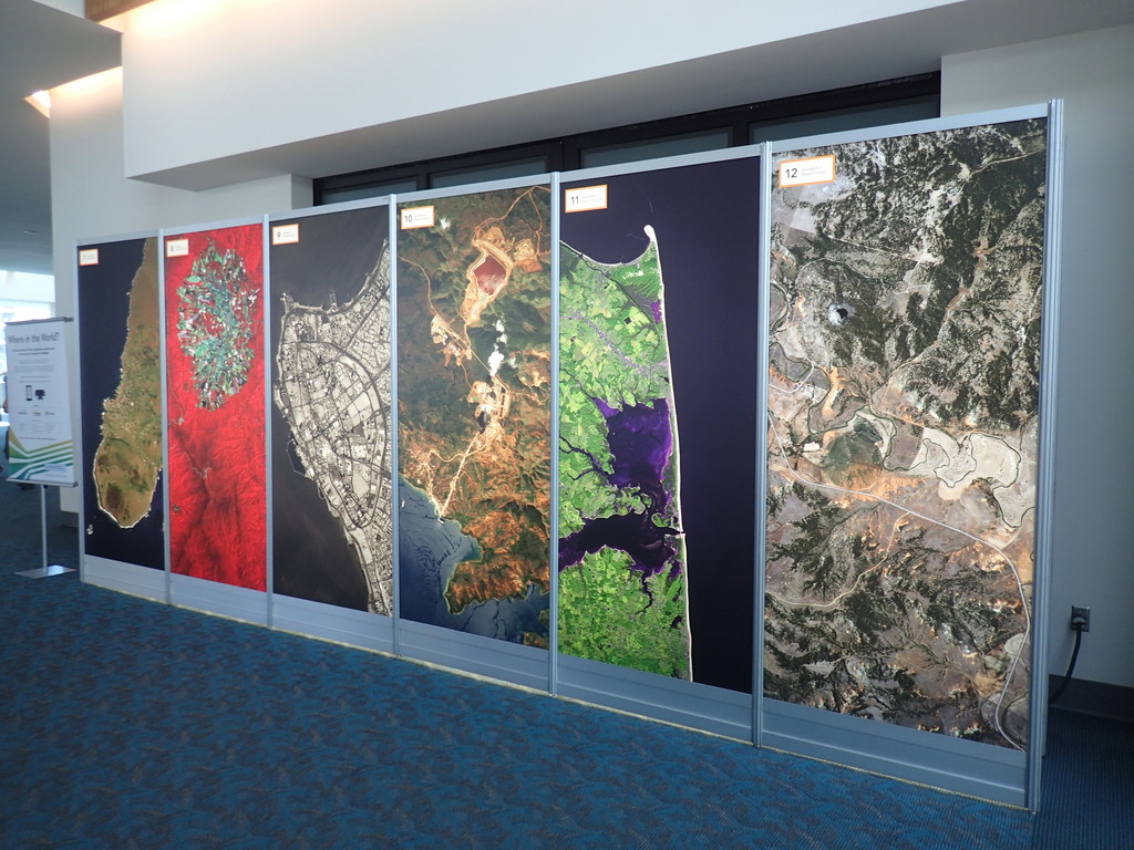 これも毎年行われているイベントで、パネルに移されている12カ所の衛星画像はどこでしょうか?を当てるクイズです。投票用紙に場所と連絡先を記入して提出すると、当選者の中から抽選で素敵なグッズ(Xboxとか)がもらえます。私にはさっぱり分かりません、、、書いてる人のを横目に見るとすべて記入していたのでマニアにはかないません。